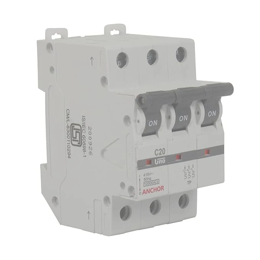 Optimized Current Rating: Rated for 20 Amps, providing essential overcurrent protection for moderately low-loaded three-phase circuits, such as lighting groups or small machinery.