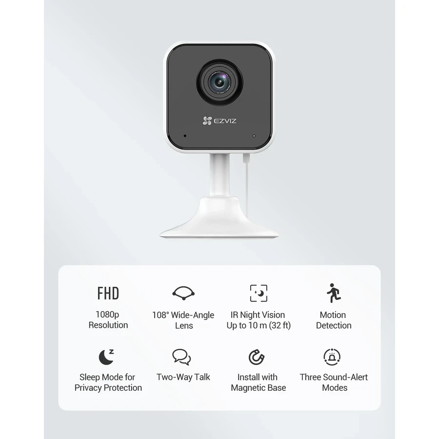 Secure and Compact Design: Operates on standard 2.4 GHz Wi-Fi, uses efficient H.264 compression, and features essential security and image functions like Password Protection and 3D DNR within a small, unobtrusive body.