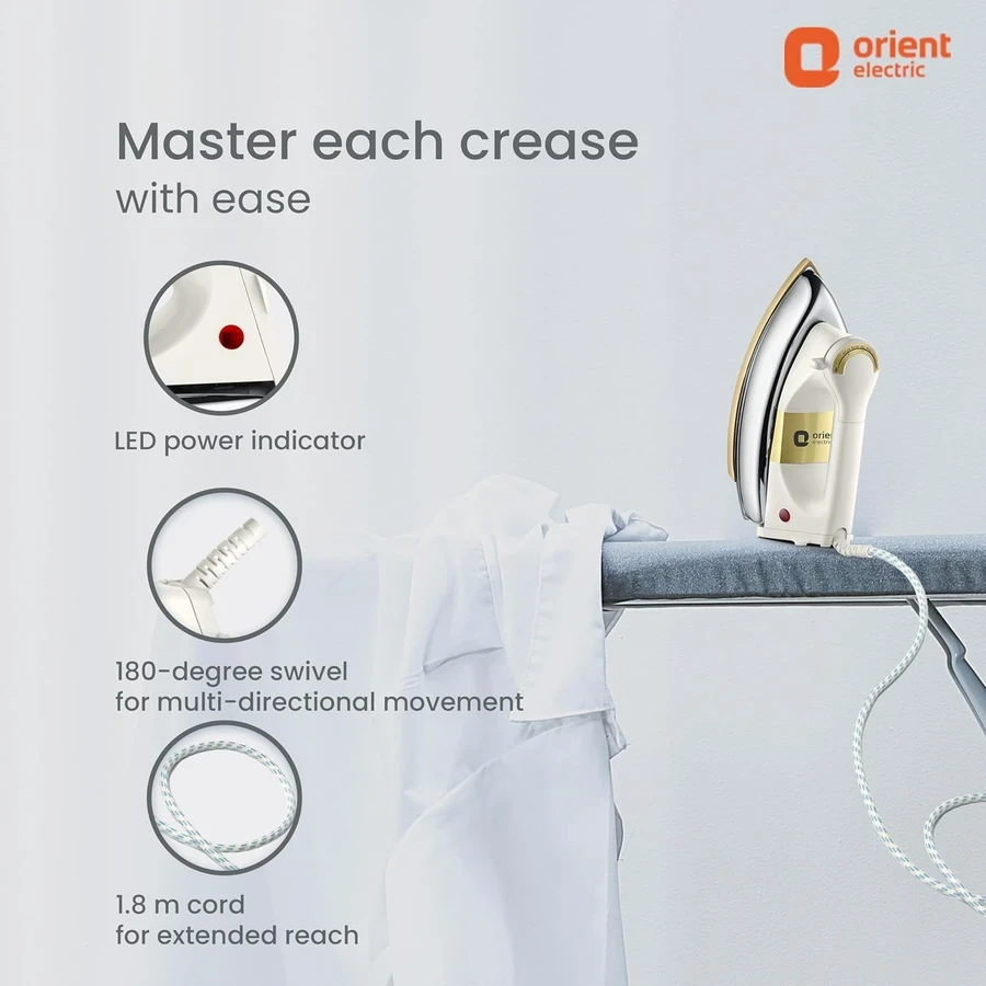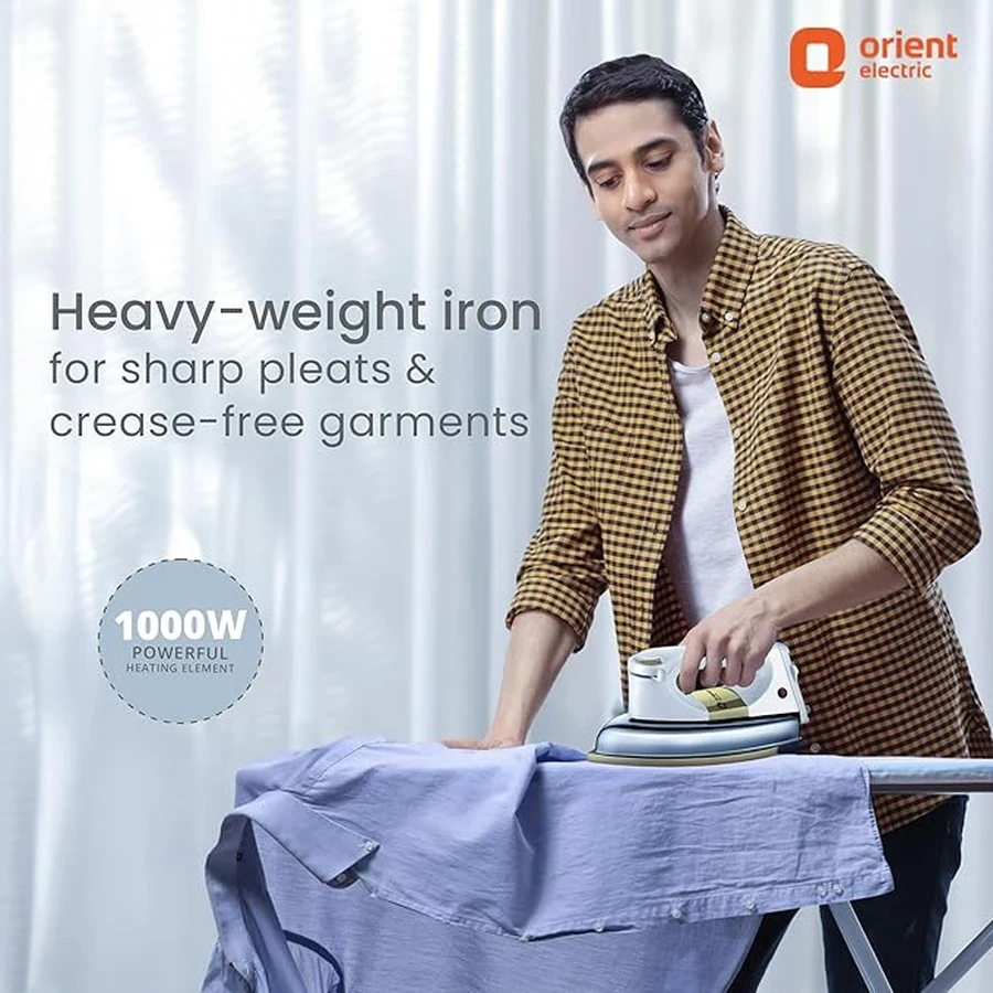 Durable 1000W Power: Features an inferred 1000 Watt rating, guaranteeing rapid and consistent heating essential for quick, effective dry ironing.