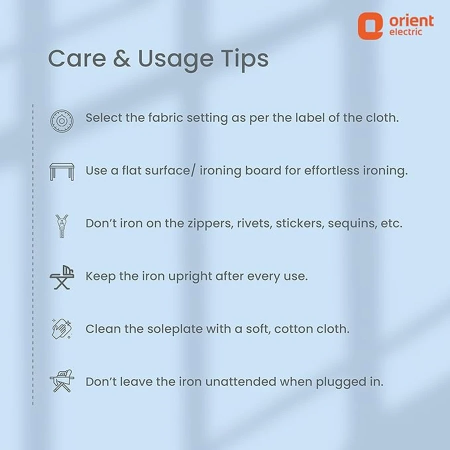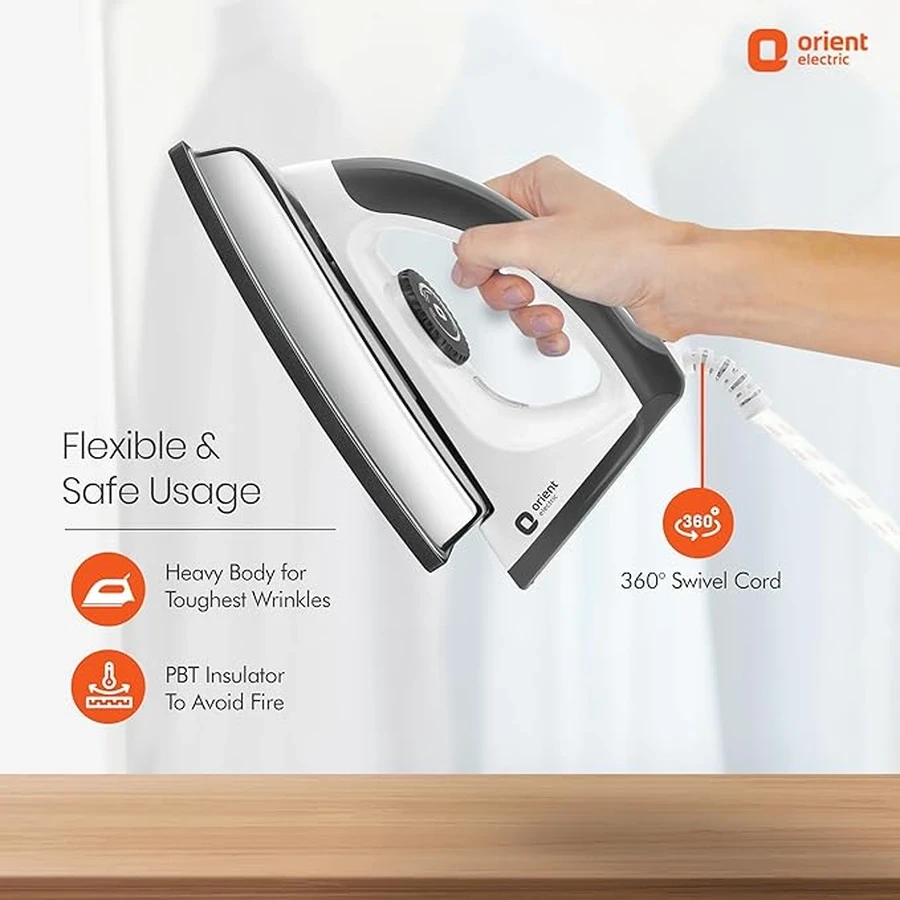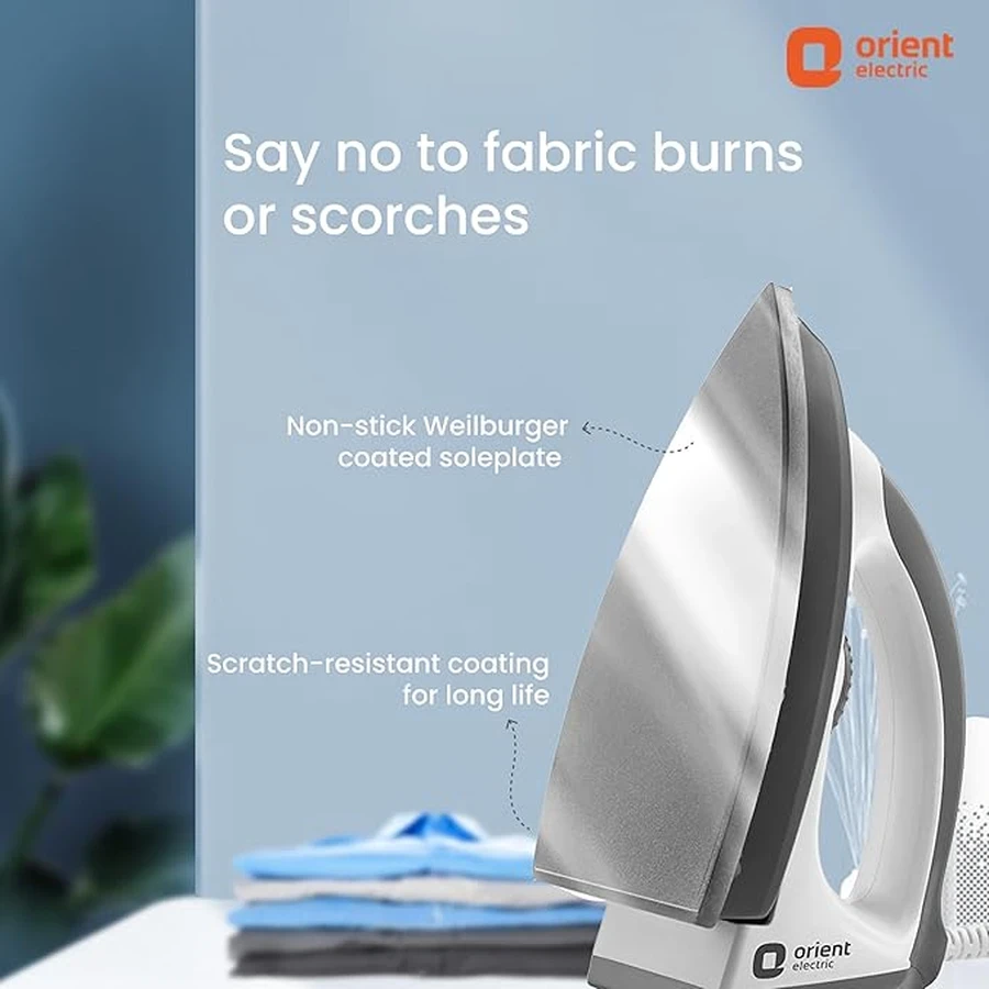 Reliable Metal Base: Equipped with a durable Metal Base (soleplate) that ensures excellent heat distribution and smooth, snag-free movement across different types of fabric.