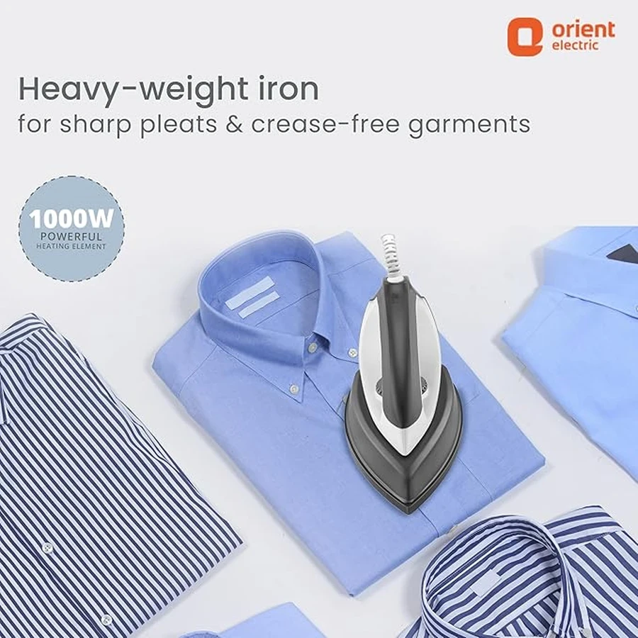 Efficient 1000W Power: Features an inferred 1000 Watt rating, providing sufficient and fast heat-up capability for handling routine clothes ironing quickly and efficiently.