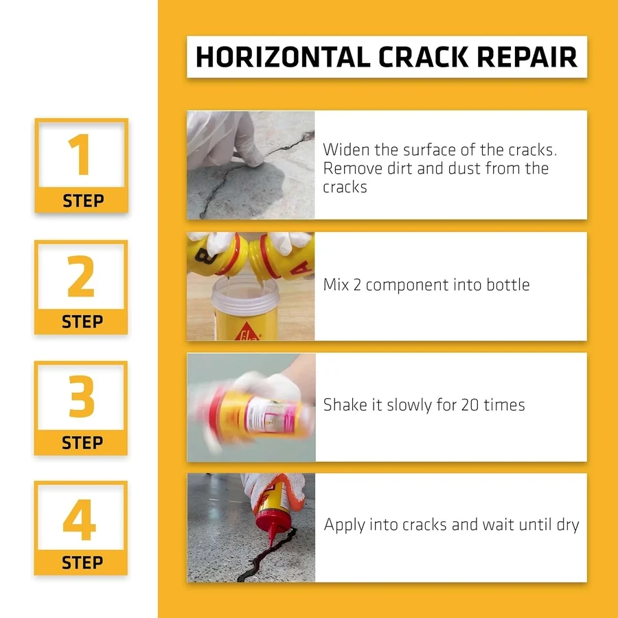 High Structural Bond Strength: Once cured, the epoxy resin creates a rigid, high-strength bond that effectively welds cracked concrete and tiles back together.