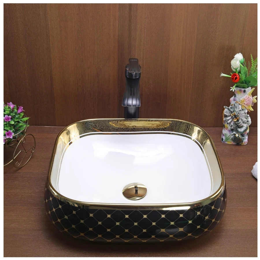 Dramatic Black & Gold Finish: Features a sophisticated Black & Gold finish, offering a high-contrast, opulent, and luxurious look that serves as a stunning centerpiece in the bathroom.